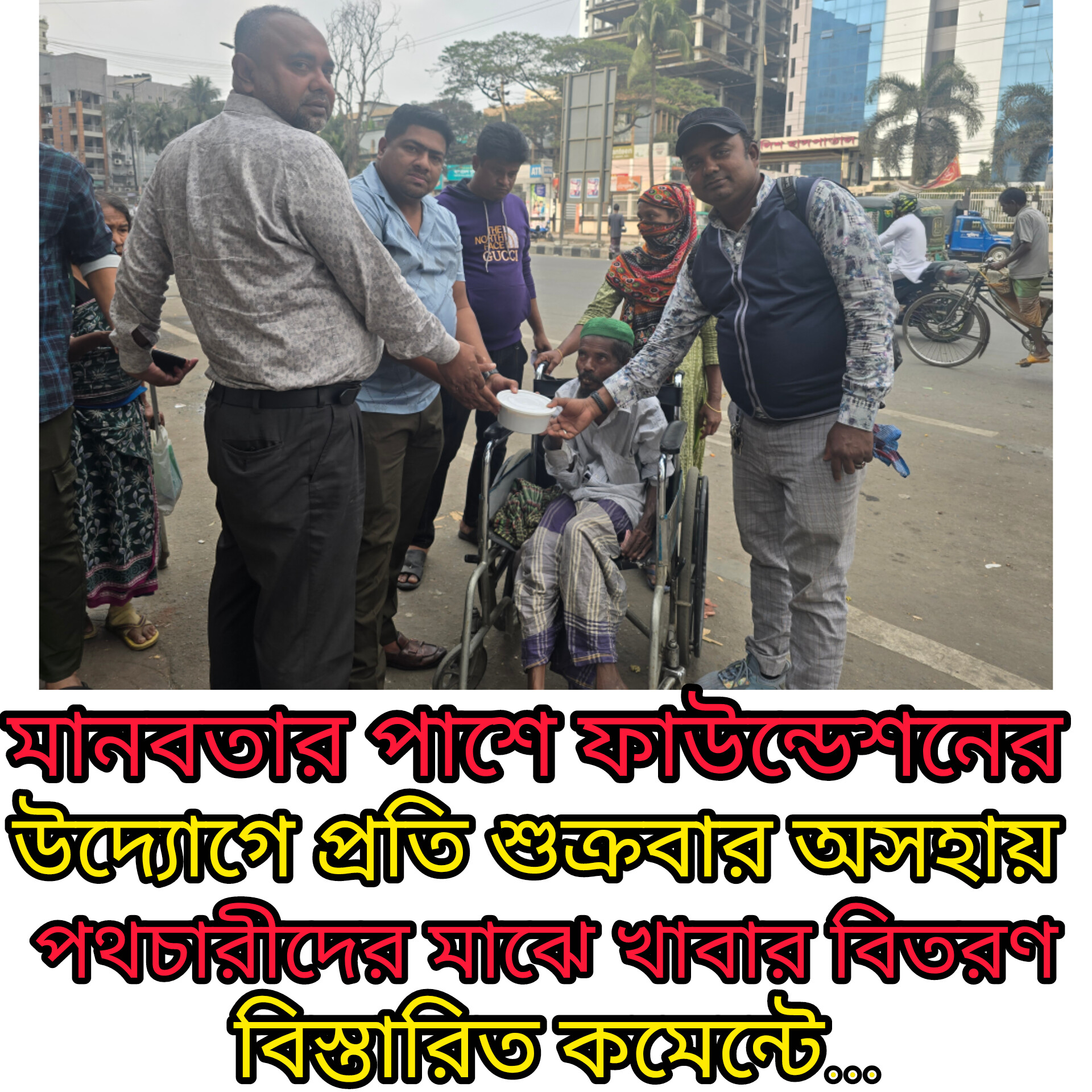 মানবতার পাশে ফাউন্ডেশনের উদ্যোগে প্রতি শুক্রবার অসহায় পথচারীদের মাঝে খাবার বিতরণ