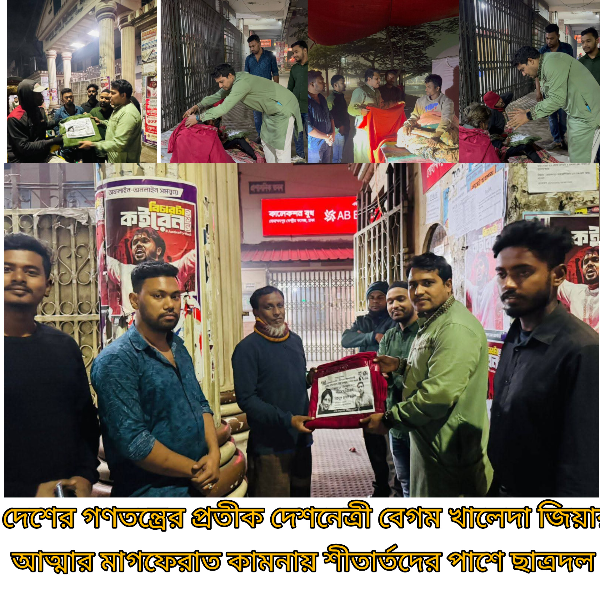 দেশের গণতন্ত্রের প্রতীক দেশনেত্রী বেগম খালেদা জিয়ার আত্মার মাগফেরাত কামনায় শীতার্তদের পাশে ছাত্রদল